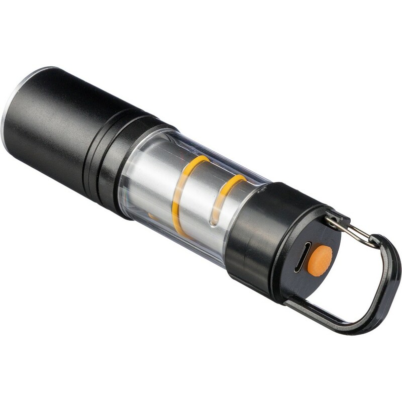 Wbudowany czarny karabińczyk oraz metalowy klips ułatwiają przenoszenie i mocowanie latarki do plecaka, paska czy kieszeni, co jest idealne dla osób aktywnych, często podróżujących lub pracujących w terenie. Ładowanie przez złącze USB-C z dołączonym czarnym kablem o długości 30 cm gwarantuje łatwe i szybkie odzyskiwanie mocy, co jest niezwykle wygodne w dzisiejszych mobilnych czasach.