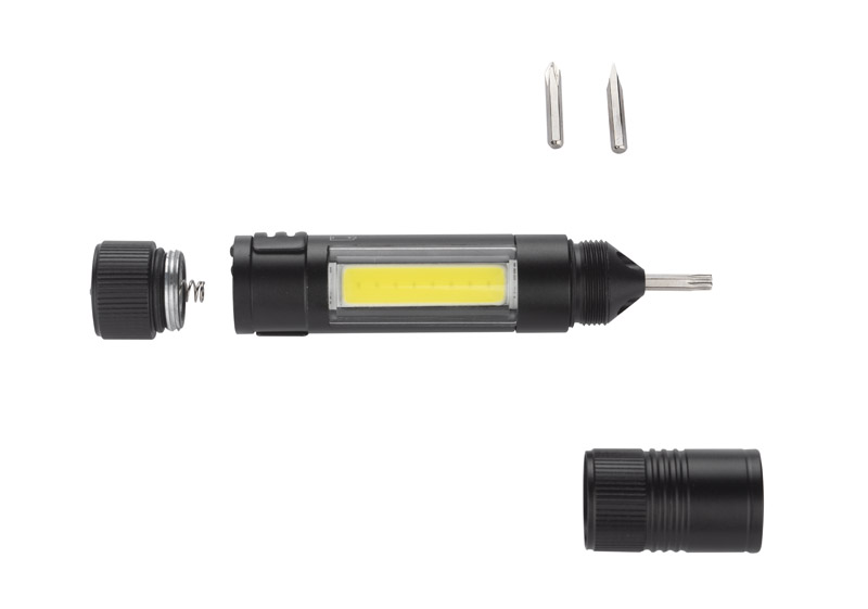 Główną atrakcją jest oświetlenie COB, które zapewnia jasne, rozproszone światło, idealne do pracy w słabo oświetlonych miejscach. Co więcej, latarka posiada zestaw trzech bitów: płaski, krzyżowy oraz gwiazdkowy, dzięki czemu sprawdzi się jako podręczne narzędzie do różnorodnych prac montażowych i serwisowych. Dodatkowo, wyposażona jest w metalowy klip oraz magnes, co zdecydowanie ułatwia jej przechowywanie oraz mocowanie do metalowych powierzchni, zapewniając łatwy dostęp w każdej sytuacji.