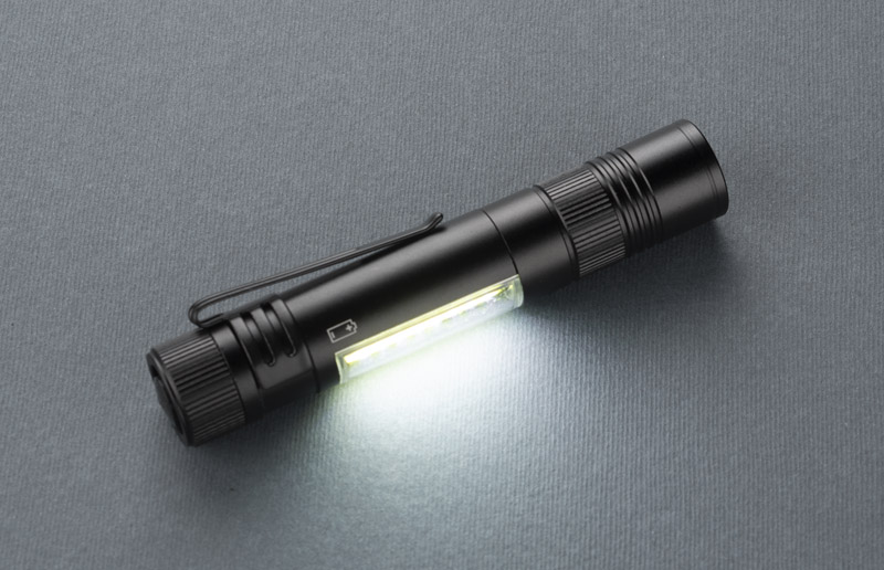 Latarka COB MAESTRO wykonana jest z metalu i ma wymiary ⌀ 19 x 107 mm, ważąc jedynie 57 g, co czyni ją wyjątkowo poręczną. Jej elegancki, czarny kolor dodatkowo podkreśla profesjonalny charakter narzędzia.